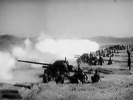 接到信号的我军位于大、小嶝岛上的两个炮团的80门105毫米美制榴弹炮和75毫米山炮一起向标示区域开火。顿时,惊天动地的炮弹声震耳欲聋,爆炸的炮弹在海面上掀起冲天水柱。