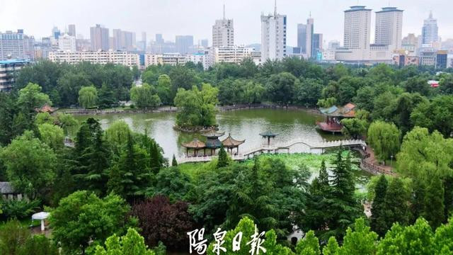 依桃河而建的桃河公园,更是“绿与水相依”的生动写照。桃河如一条碧带穿城而过,公园沿着河道铺展,河水缓缓流淌,岸边的树木、人影倒映在水面,水动则影动,仿佛将山水与城景都揉进了碧波里。公园内,儿童戏水广场、音乐喷泉广场、生态岛等精巧别致,极大地丰富了城市绿化景观。