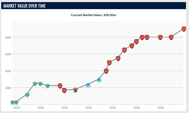 24岁的萨利巴也成为全球最贵中卫,本赛季萨利巴代表阿森纳出场16次,阿森纳英超15轮后仅丢9球,欧冠赛场阿森纳5轮仅丢1球。
