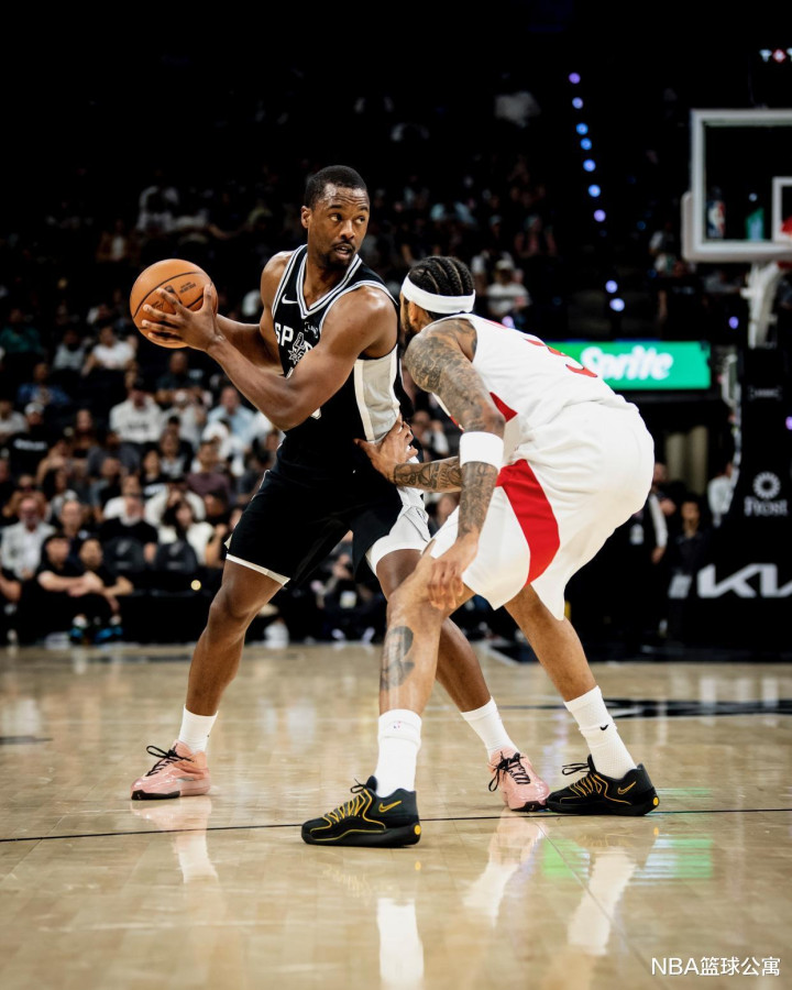 马刺队,哈里森巴恩斯7中6,三分球5中4高效的砍下了18分5助、瓦塞尔10中5得到了15分3板5助2断、哈珀9中4贡献了11分6板6助、凯尔登约翰逊10分5板、尚帕尼9分9板1助、麦克劳林5分2助2断、布莱恩特3分、比永博2分1板1助。