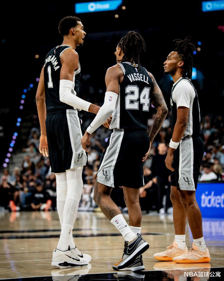 文班亚马、卡斯尔与瓦塞尔在场上交流
