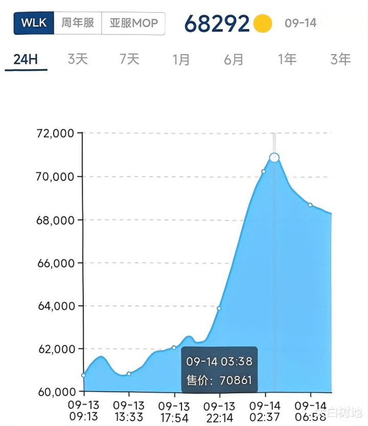 回顾其价格走势,会发现这场疯狂并非毫无预兆。9月9日晚11点28分,系统刷出了60001金的历史最高价,在NGA论坛瞬间炸锅,有人懊悔“上周未囤徽章”,有人挂出5万G求收购。仅仅过了两小时,价格就暴跌至5.4万G这种暴涨暴跌的行情,让玩家们仿佛置身于一场惊心动魄的资本游戏中。