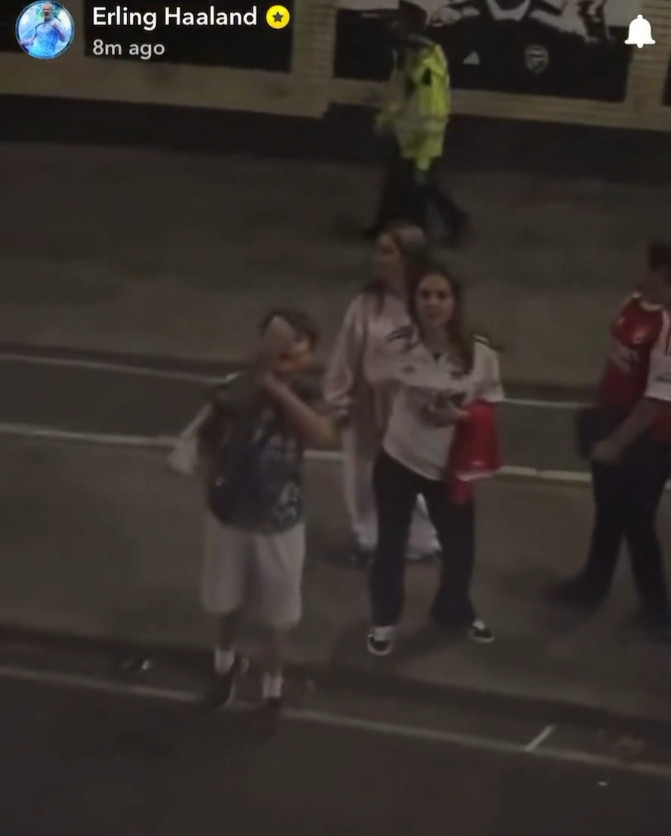 赛后,哈兰德在个人社媒snapchat晒出被阿森纳球迷辱骂的视频,看着车外的球迷辱骂做出不雅手势时,正在录视频的哈兰德看笑了。