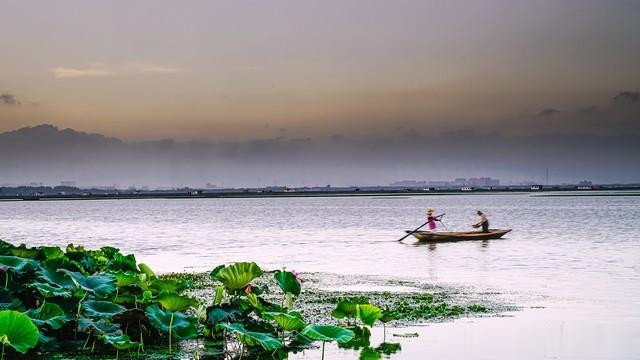 穿过镇江,列车驶入安徽境内,首站便是被誉为“绿城”的合肥。秋日的合肥,最动人的风景不在市区的高楼里,而在巢湖的波光里——自从巢湖成为合肥的“内湖”,这片水域就成了城市的“后花园”。乘船上姥山岛,远远望去,这座巢湖最大的岛屿像一颗青螺浮在水面上,旁边的姑山、鞋山小巧玲珑,三座岛连在一起,就是老合肥人常说的“巢湖三山”。黄昏时分最是热闹:渔民驾着小渔船满载而归,船舱里的白虾、银鱼闪着银光;湖边村落的烟囱里升起袅袅炊烟,混着稻花香飘得很远;偶尔有晚归的水牛踏着余晖从田埂上走过,尾巴甩得悠闲,正好应了巢湖那句老谚语:“水中百样宝,只怕人不找”。要是想尝鲜,湖边的渔家乐一定别错过,清炒银鱼、白鱼煮汤、醉白虾,不用复杂的调料,单靠巢湖的湖水,就能把鲜味吊到极致。